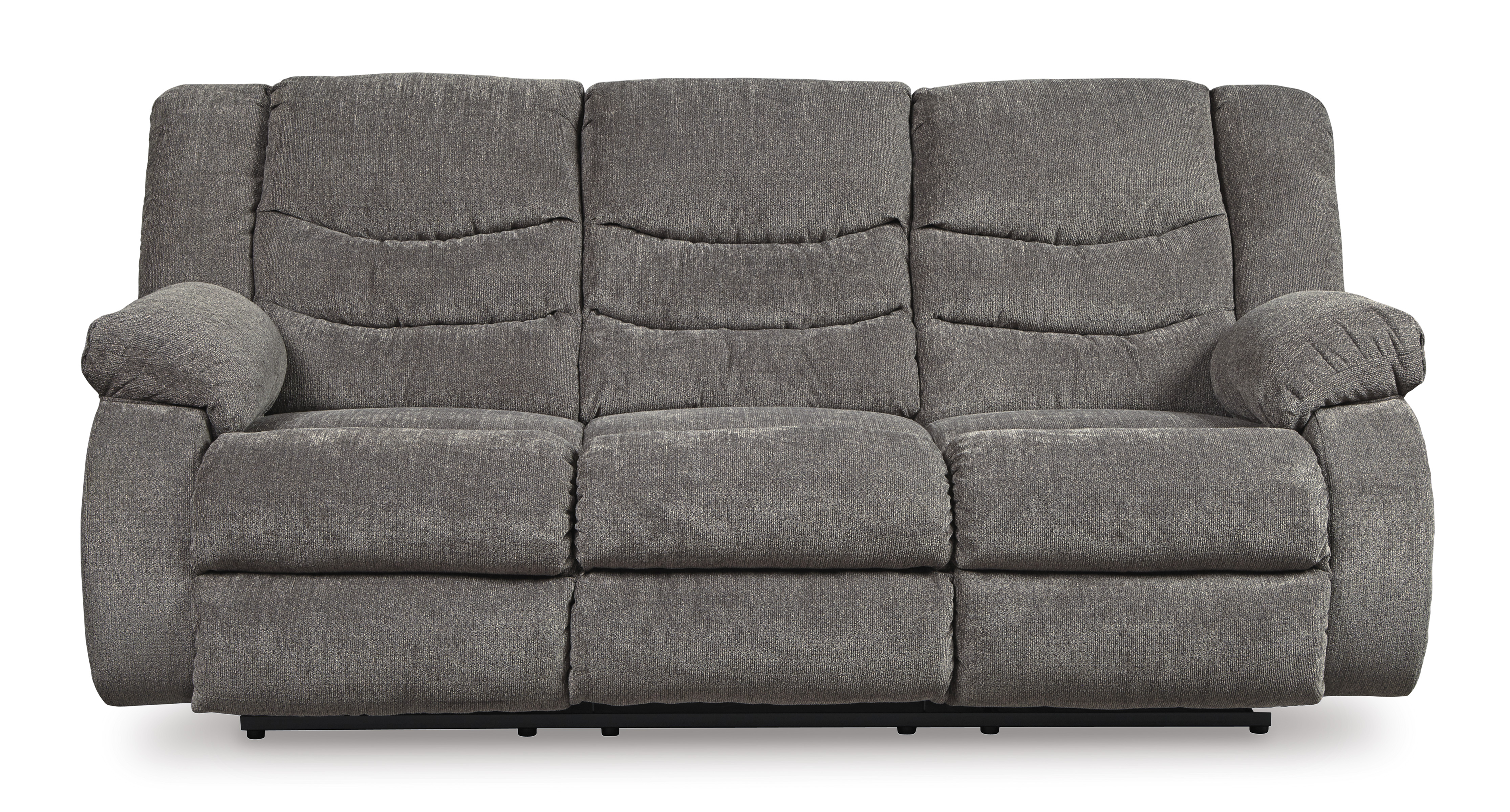 This reclining sofa puts the win in winning. Its waterfall back design and doubly plump pillow top arms team up with soft chenille fabric to go for the goal. Ample seating room makes the comfort possibilities endless. Sit back and relax. You won’t go wrong with this reclining sofa.