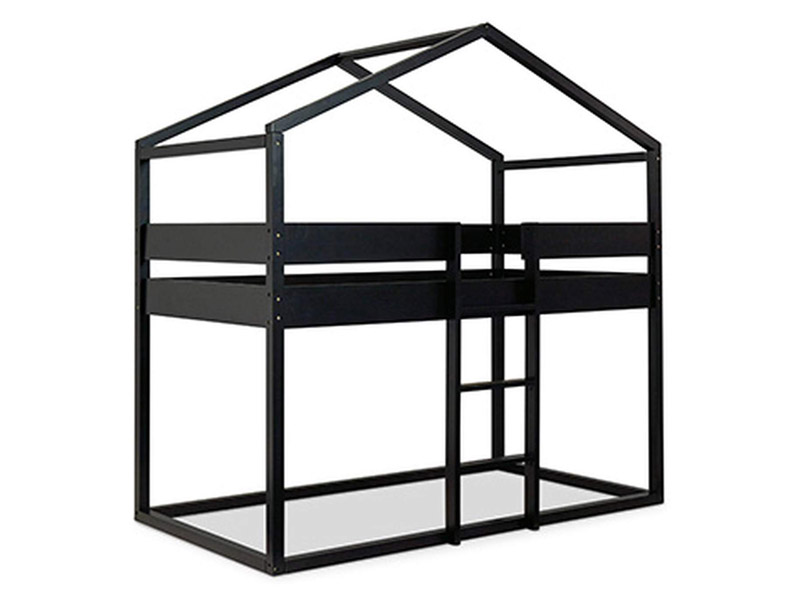 Adorable child’s bed is in the shape of simple house frames. Made with solid wood and features an architectural look that emulates beams and trusses for a great place for kids to sleep and play. B082-1xx is black; B082-2xx is white. B082-16x and B082-26x features a simple A-frame design for use with a mattress laid on the floor. Canopies not included.