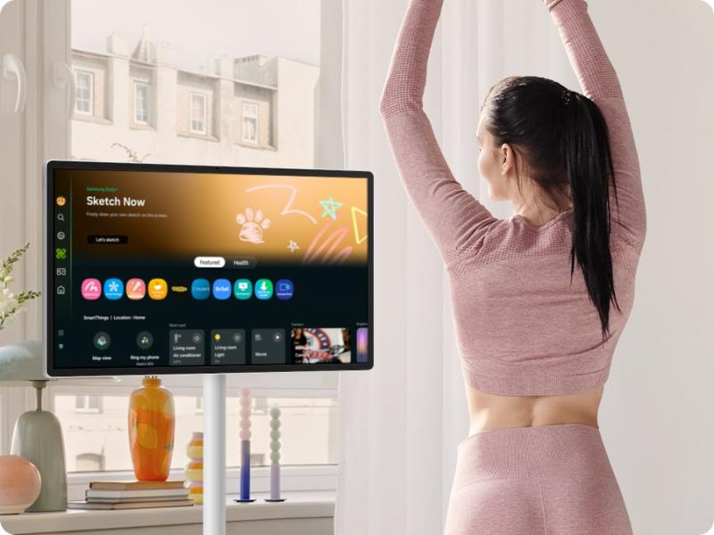 Experience seamless video calls and smart home monitoring with one device. The Slim-Fit Camera connects wirelessly to The Movingstyle, enabling clear FHD picture quality video calls. It also lets you to monitor your home through the SmartThings app.7