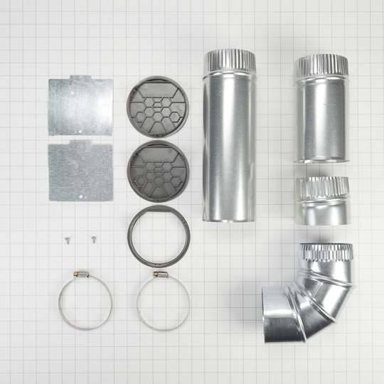 This Dryer 4-Way Vent Kit allows heat to safely vent from the side and bottom of your appliance during the drying cycle. This is an accessory that can be used across several dryer brands with lint screens in the front; check to see if your model number is compatible. This kit creates several placement possibilities and installation alternatives for your dryer’s ventilation exhaust. Installing this accessory will require basic hand tools and novice repair experience.