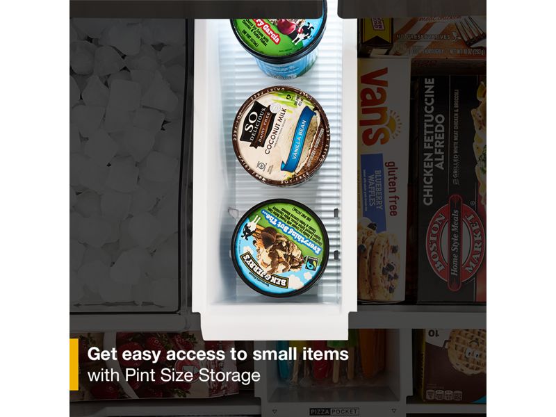 Pint Size Storage provides easy access to frozen snacks and pint-sized ice cream, so they won't get buried in your freezer.